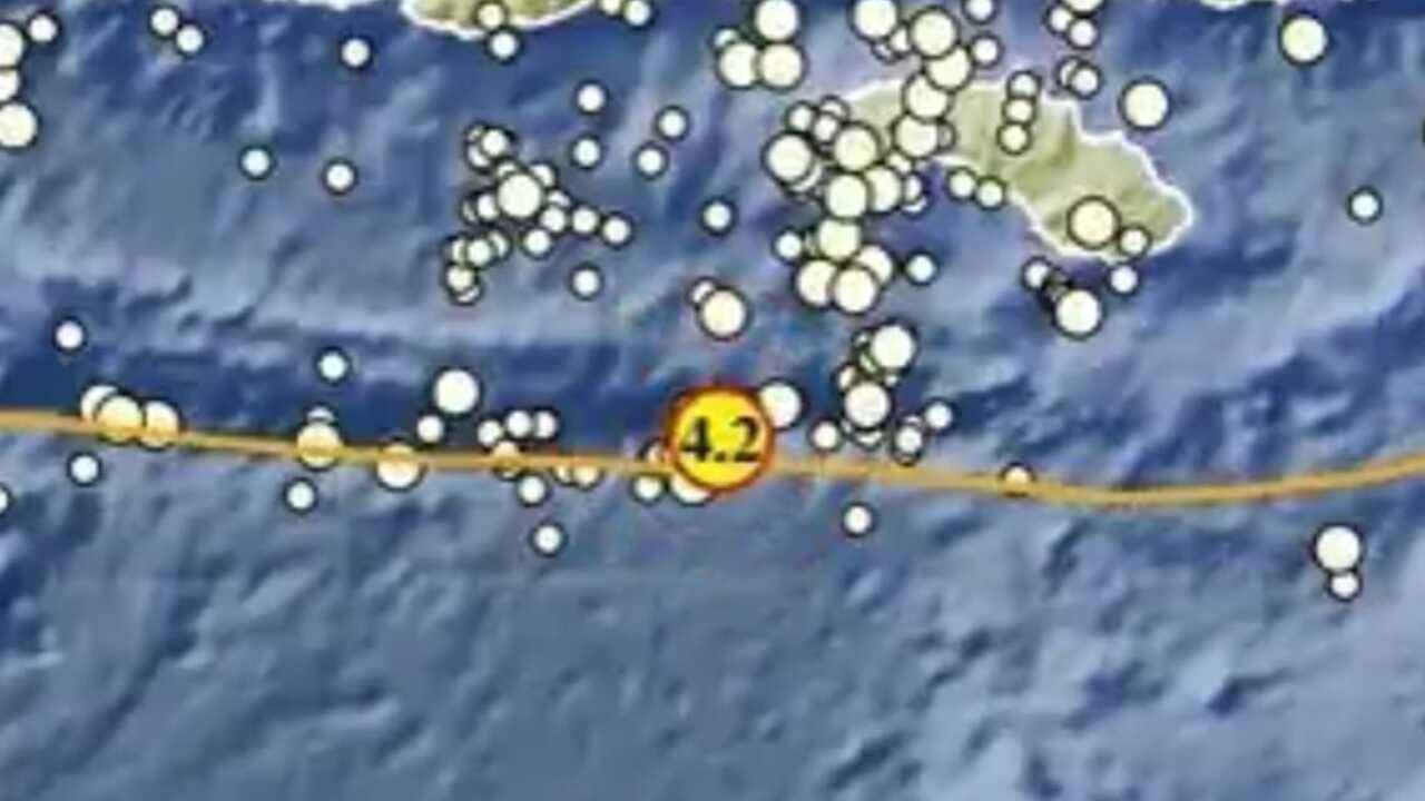 Sebelumnya, gempa 4.2 Magnitudo dirasakan di Kodi, Simba Barat Daya, NTT, pada pukul 01:53:05 WIB.