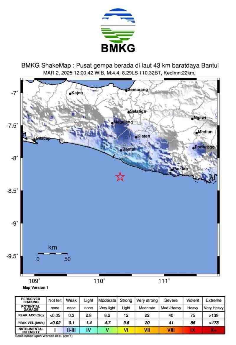 Menurut Direktur Gempabumi dan Tsunami BMKG, Dr. Daryono, S.Si., M.Si dalam unggahannya di laman Instagram @DaryonoBMKG, 2 Maret 2025, gempa tersebut berpusat atau episenternya di laut 43 km barat daya Bantul.