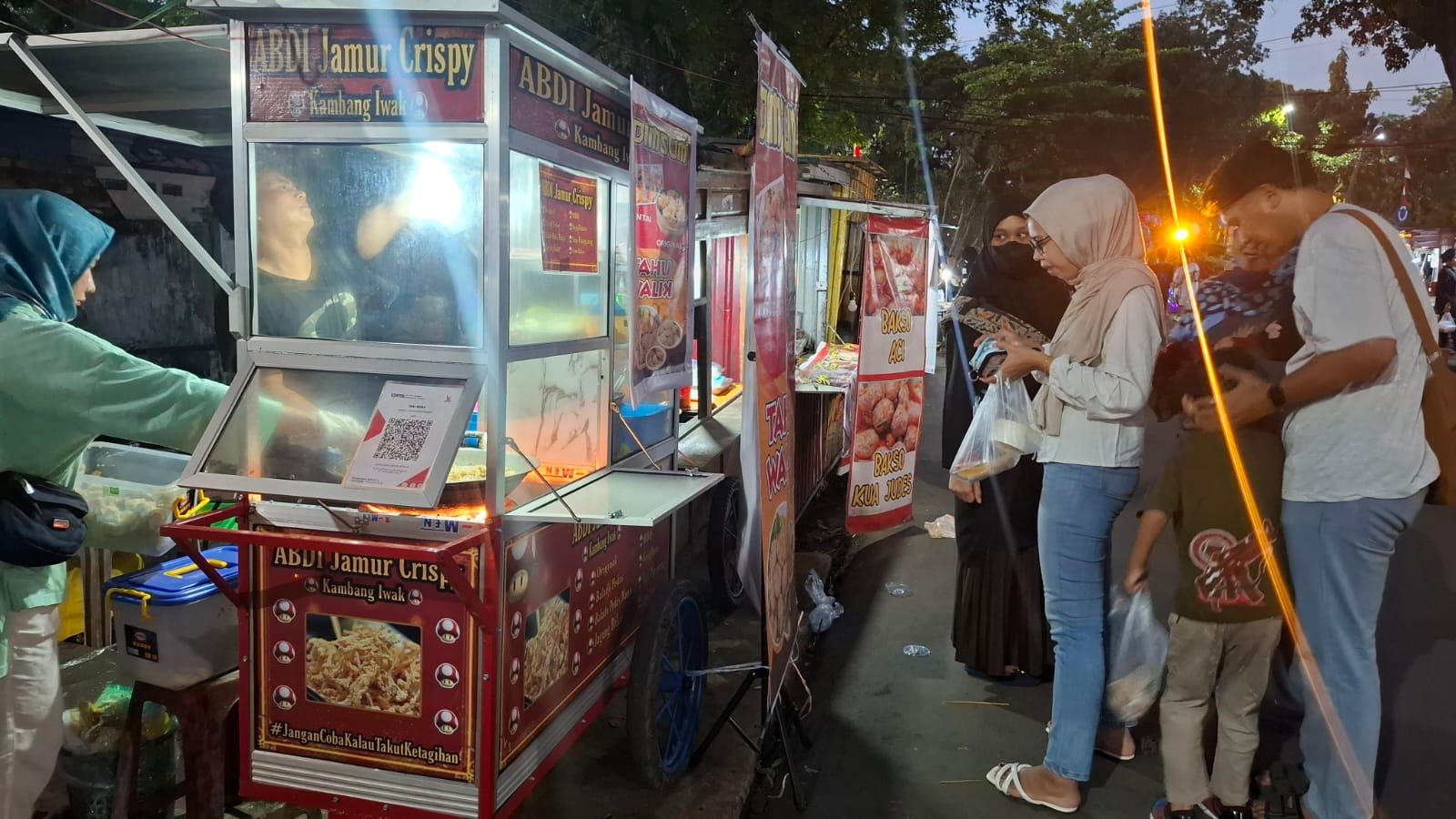 Sapta pemilik 'Abdi Jamur Crispy' sudah 4 tahun menyiapkan QRIS untuk memudahkan para pembeli melakukan pembayaran secara digital.-Bethanica/palpres.com-