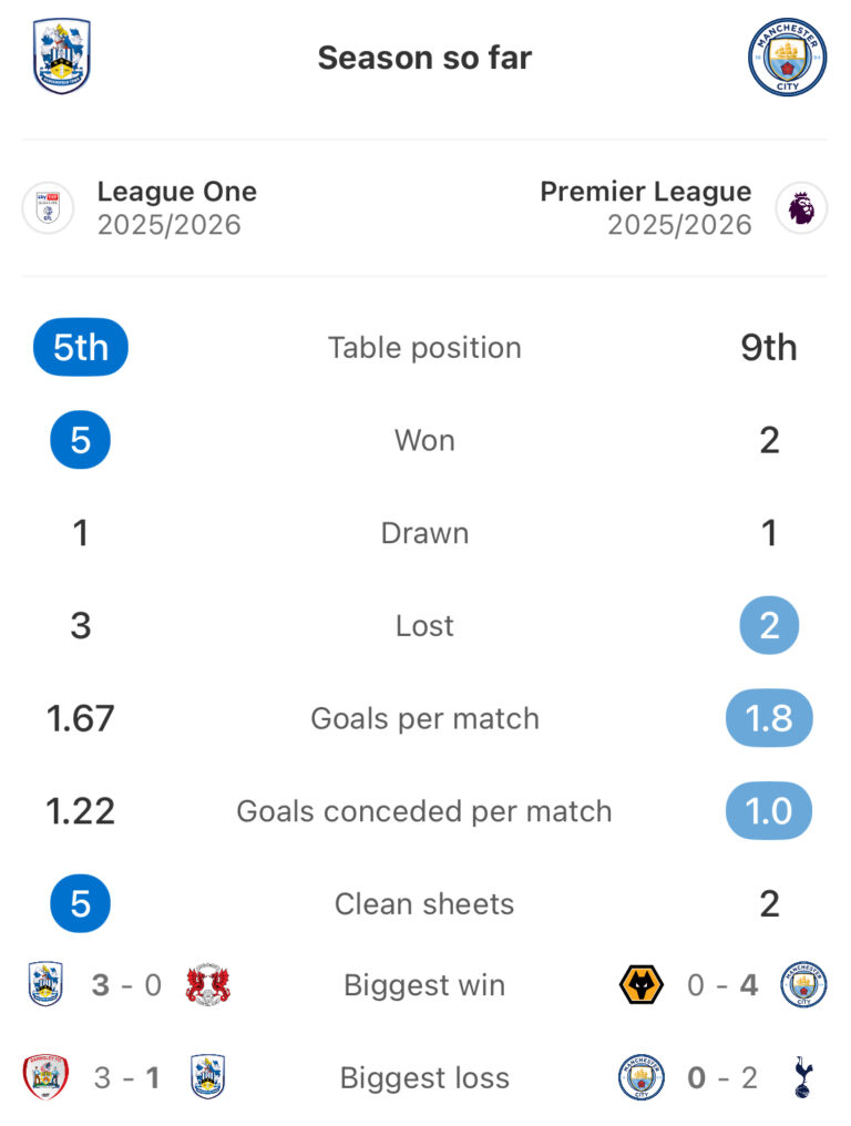 Piala EFL Huddersfield vs Manchester City--FotMob