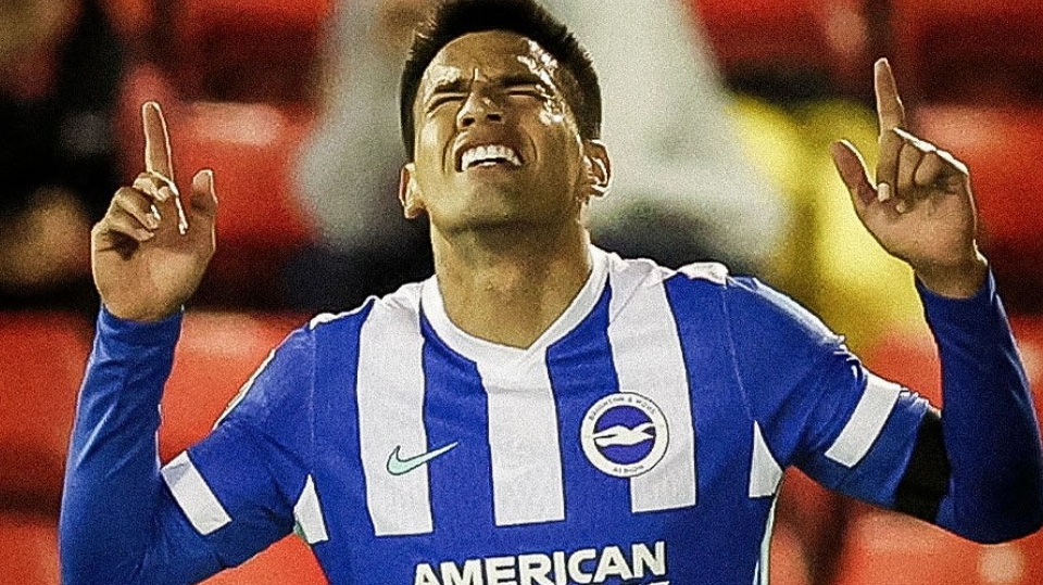 Diego Gomez dari Brighton & Hove Albion merayakan kemenangan pada 23 September 2025--IG/@raiseurgame