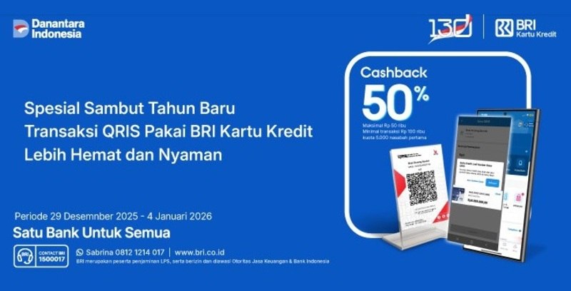 Dikutip dari laman website bri.co.id, promo QRIS Cashback 50% menggunakan BRI Kartu Kredit berlaku di seluruh Indonesia hingga 31 Januari 2026.