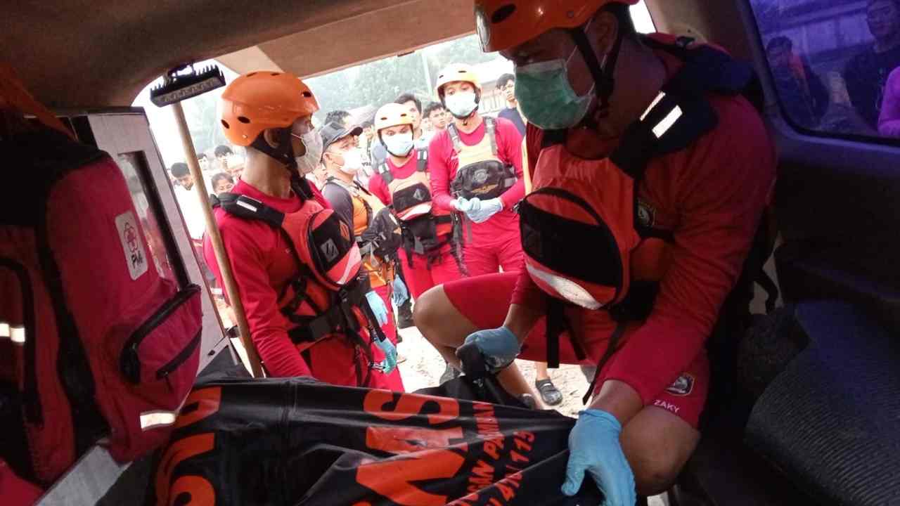 Tim SAR saat mengevakuasi jasad Arisandi, warga Palembang yang tenggelam di Sungai Musi.-Kantor SAR Palembang-