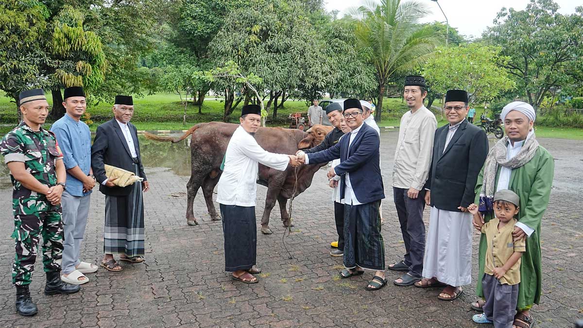 Penyerahan bantuan hewan kurban secara simbolis dilakukan oleh Direktur Operasi & Produksi PT Bukit Asam Tbk (PTBA), Suhedi, kepada perwakilan masyarakat di Masjid Jami' Bukit Asam, Jumat 6 Juni 2025.