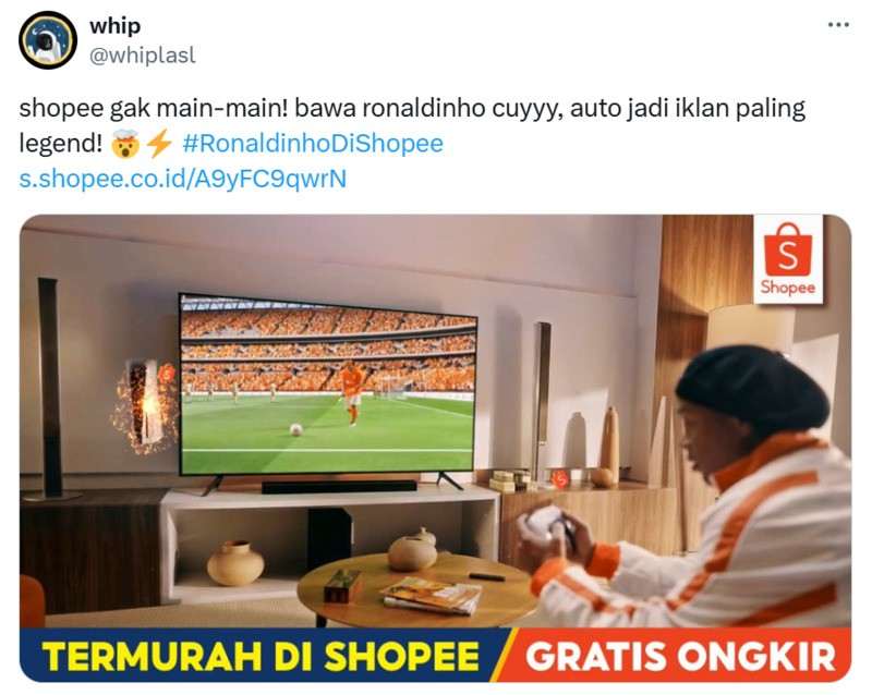 Tagar #RonaldinhoDiShopee bahkan sempat menjadi trending topic No. 1, menandakan antusiasme luar biasa dari para penggemarnya.