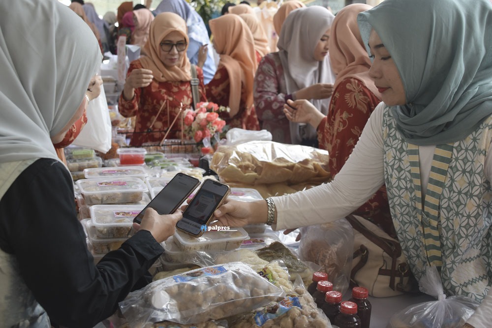 transaksi dengan QRIS BSB di Bazar Ramadan Dharmawanita Persatuan Kota Palembang dapat potongan Rp10 Ribu-Alhadi Farid/palpres.com-