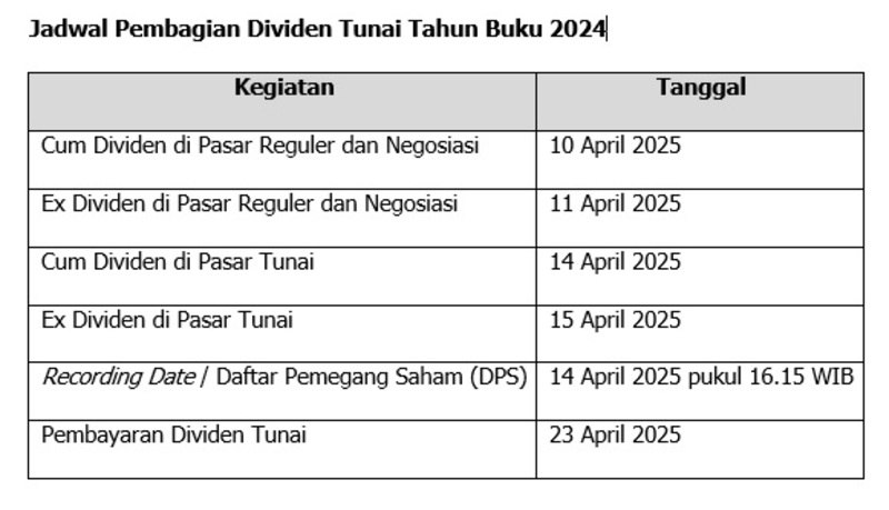 PT Bank Rakyat Indonesia (Persero) Tbk atau BRI telah menetapkan Kamis, 10 April 2025 sebagai cum date pembagian dividen tunai untuk Tahun Buku 2024 di pasar reguler dan negosiasi. -BRI-