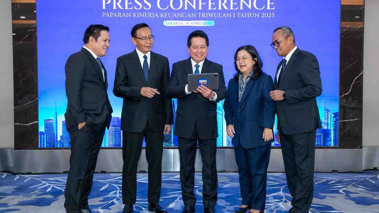 Press Conference Kinerja Keuangan BRI Triwulan I 2025 oleh Direktur Utama BRI Hery Gunardi, dan dihadiri oleh Direktur Finance & Strategy BRI Viviana Dyah Ayu, Direktur Manajemen Risiko BRI Mucharom, Direktur Micro BRI Akhmad Purwakajaya, dan Direktur Net-BRI-