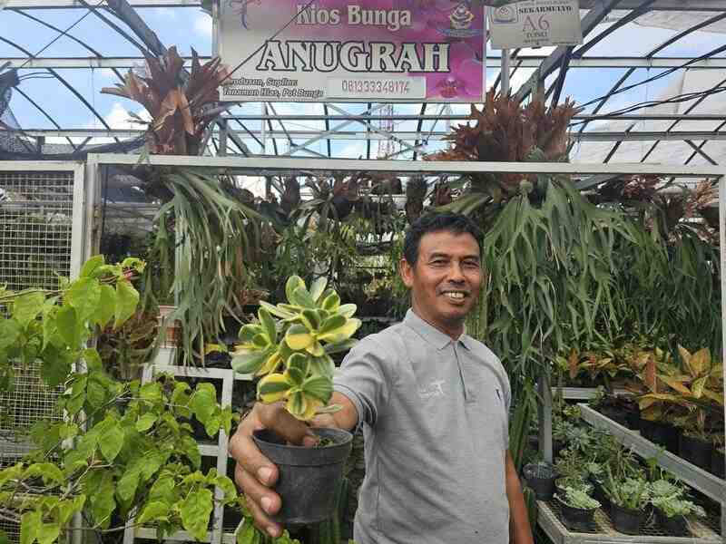 Tono, salah satu di antara para penjual tanaman hias di kios Pasar Wisata Tani Sekar Mulyo, Kota Batu, yang merupakan klaster usaha binaan BRI. -BRI-