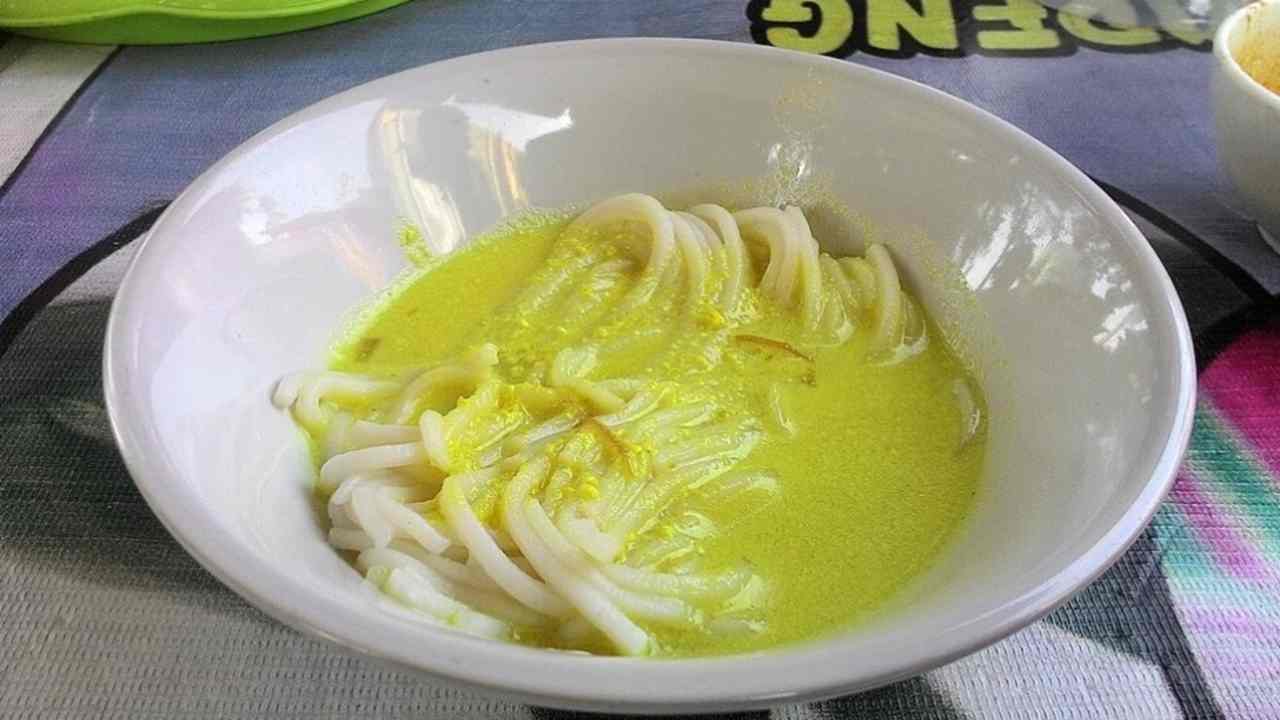 Ciri khas: Bentuk mi tebal, kuah santan lebih pekat.