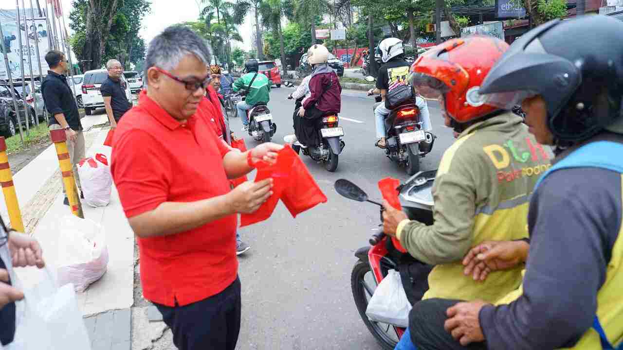 Ketua DPD PDI Perjuangan Sumsel, Dr. HM Giri Ramanda N Kiemas, SE.MM tampak membagikan paket takjil kepada pengendara-Rossa-