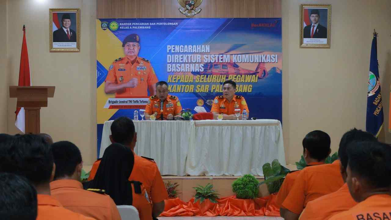 Dirsiskom Basarnas Brigjen TNI Tofik Tofana, S.T saat memberi arahan kepada personel Kantor SAR Kelas A Palembang.-Kantor SAR Palembang-