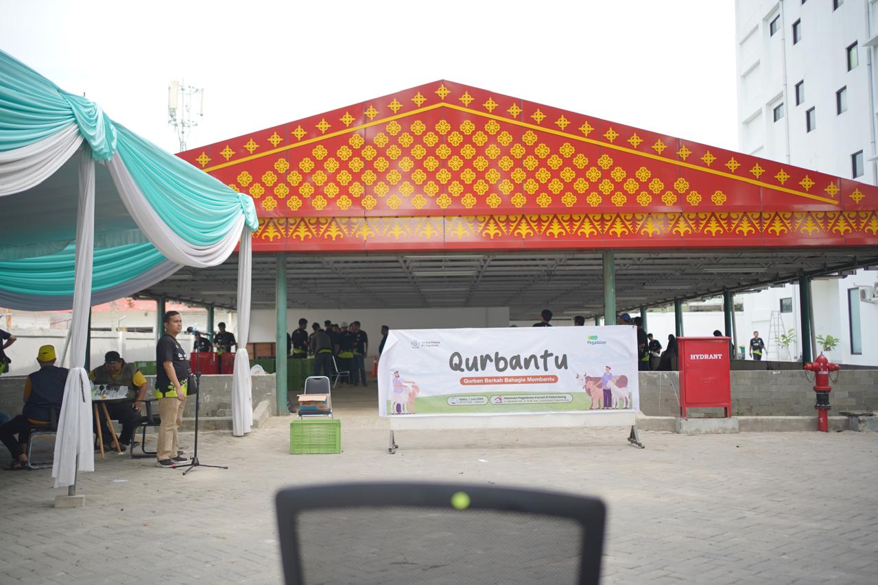 Pelaksanaan qurban diselenggarakan pada lingkungan Kantor Pegadaian di Jalan Merdeka Kota Palembang, Sumatera Selatan.