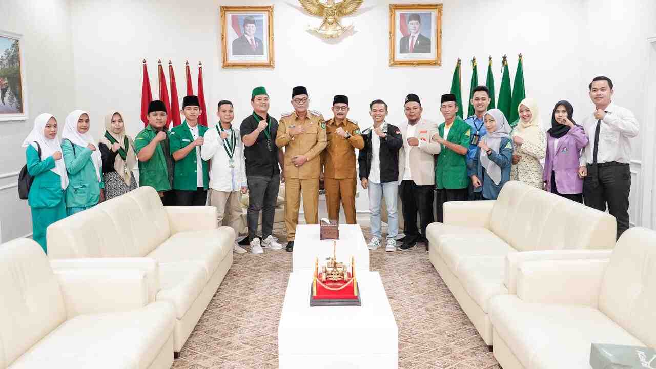 Bupati HM Toha dan Wakil Bupati Rohman saat menerima audensi pengurus Aliasi Pemuda dan Mahasiswa Muba.-Dinkominfo Muba-