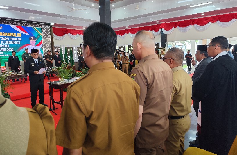 Bupati Muba Membacakan Sumpah Pelantikan Bagi 14 Pejabat Esselon II yang Dilantik. -Firdaus Palpres.com-
