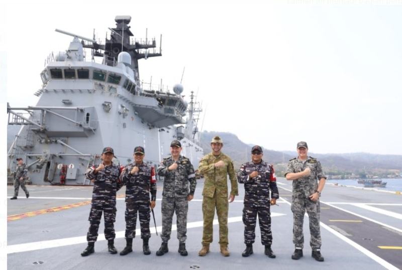 Foto bersama diatas geladak kapal perang Australian Defense Force (ADF) HMAS Adelaide L01 -Tangkapan Layar X @Puspen_TNI-Pusat Penerangan TNI