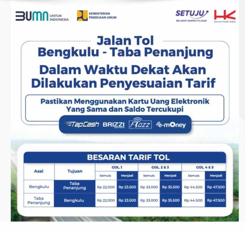 SEGERA BERLAKU! Tarif Baru Tol Bengkulu - Taba Penanjung, Segini Besarannya