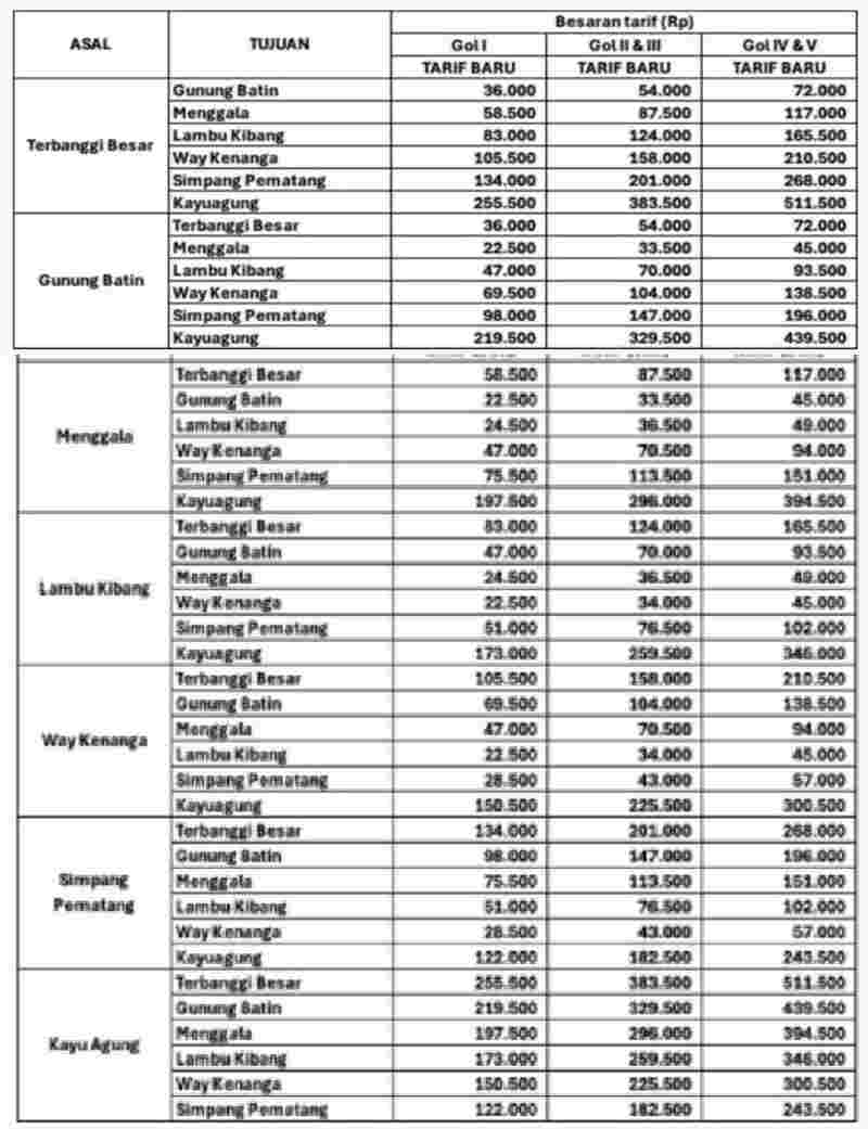 Selanjutnya, Adjib memaparkan tarif normal yang kini berlaku di Jalan Tol Terbanggi Besar – Pematang Panggang – Kayu Agung.