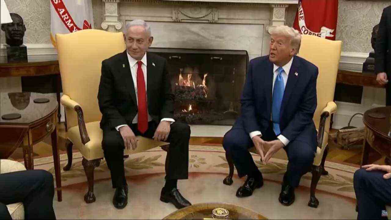 Presiden AS Donald Trump saat melakukan pertemuan dengan Perdana Menteri Israel Benjamin Netanyahu-Tangkapan Layar X @AdameMedia-