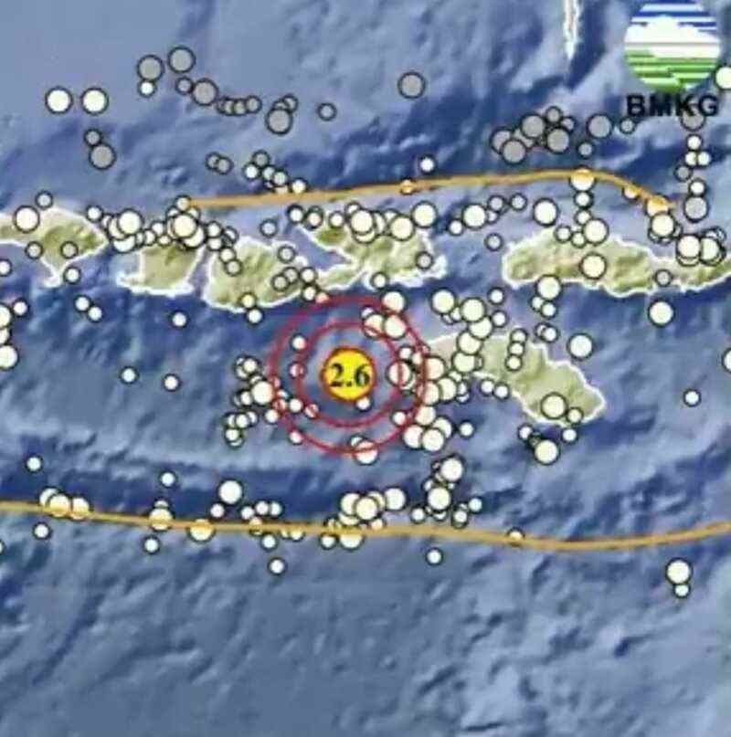 Pagi ini pada pukul 04:58:28 WIB, BMKG juga mencatat gempa 2.6 Magnitudo mengguncang Kodi, Sumba Barat Daya, Nusa Tenggara Timur (NTT).-@infobmkg-