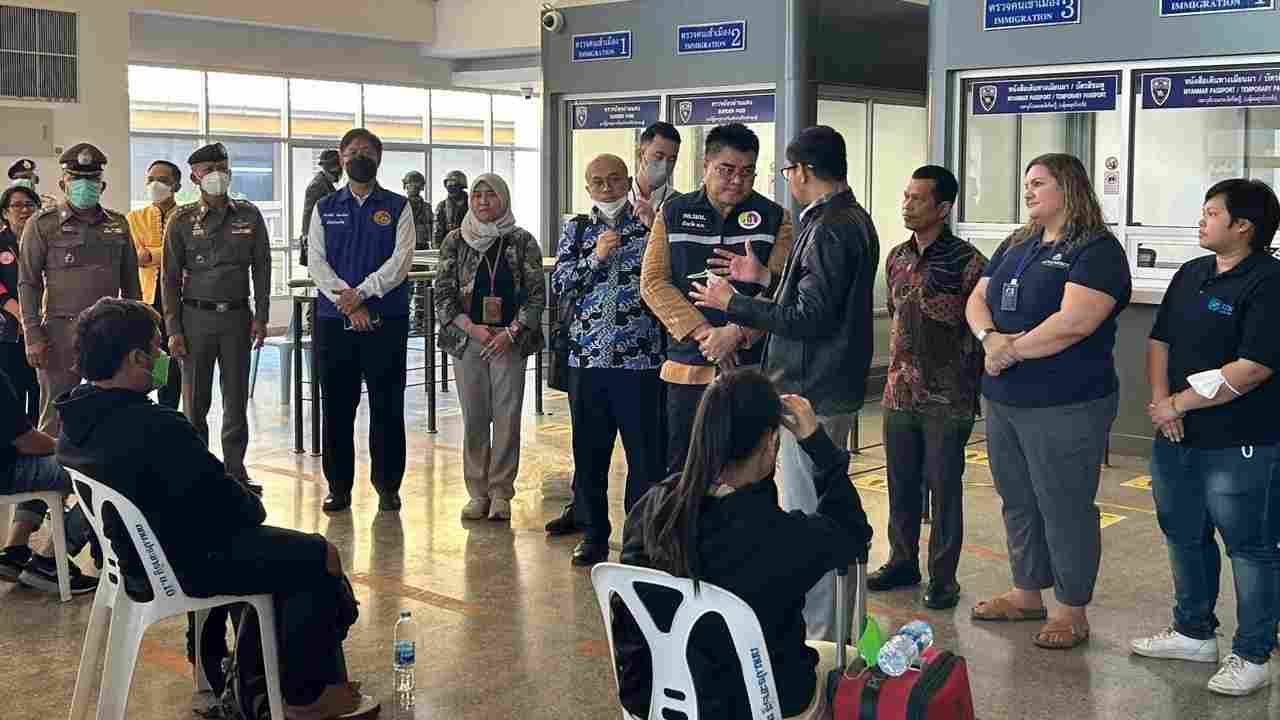 Setiba di wilayah Maesot, para WNI ini menjalani pemeriksaan kesehatan, imigrasi dan National Referral Mechanism (NRM) oleh Otoritas Thailand.