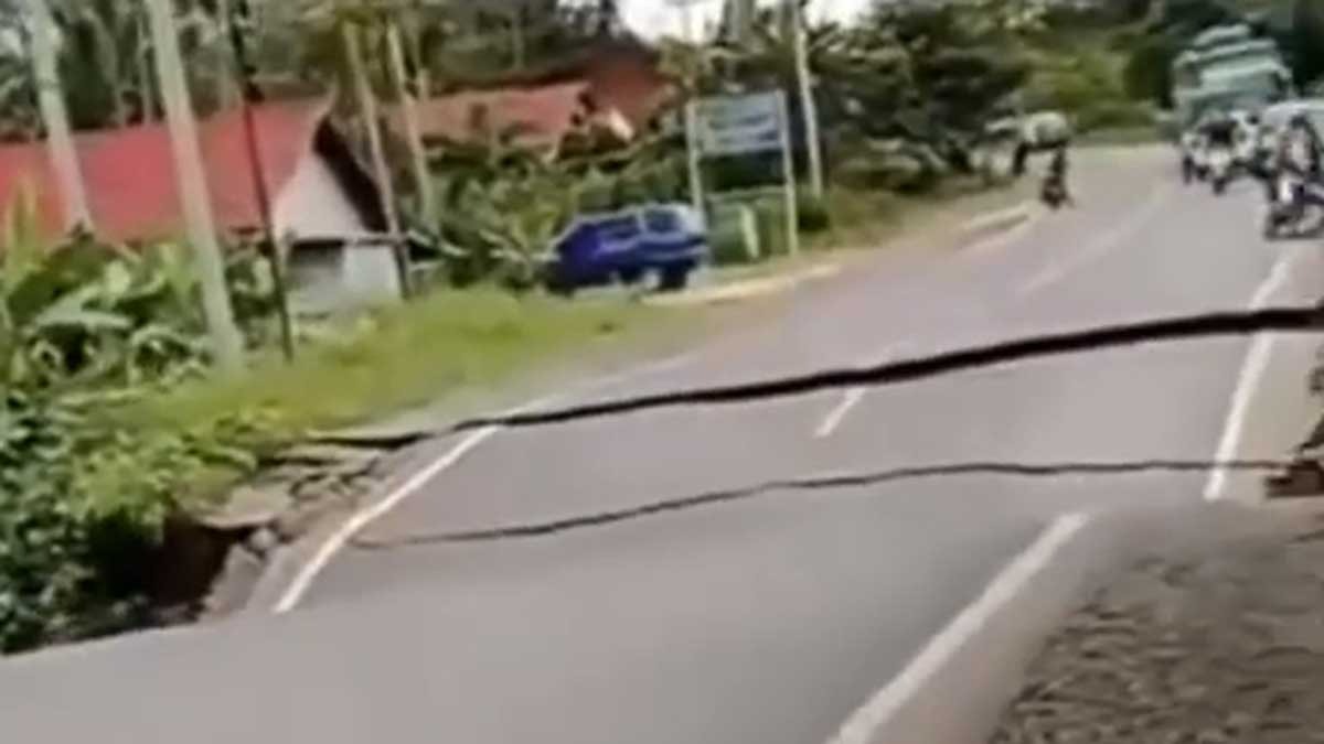 Detik-detik amblasnya jalan lintas Sumbar – Jambi, tepatnya pada ruas Bts. Prov. Sumbar – Muara Bungo (N.009) STA. 53+000 di Desa Sirih Sekapur-Tangkapan Layar media sosial-
