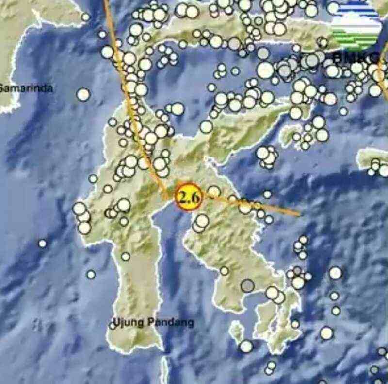 Gempa kberkekuatan 2.6 Magnitudo terjadi pada pukul 07:24:14 WIB di Luwu Timur, Sulawesi Selatan-@infobmkg-