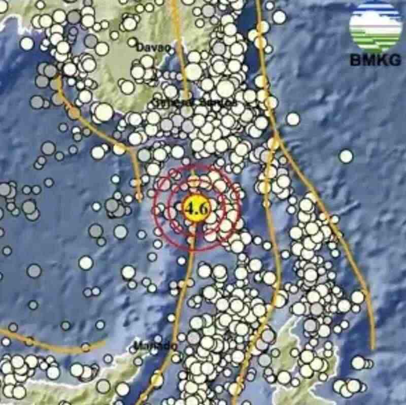 Gempa berkekuatan 4.6 Magnitudo dirasakan di Melonguane, Sulawesi Utara (Sulut), pada pukul 00:49:48 WIB. Lokasi gempa pada koordinat 4.18LU, 126.10BT.-@infobmkg-