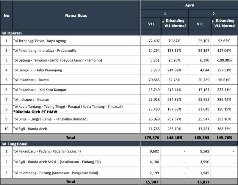 Tol Indrapura – Kisaran, VLL 25.662, Peningkatan 236,42 persen