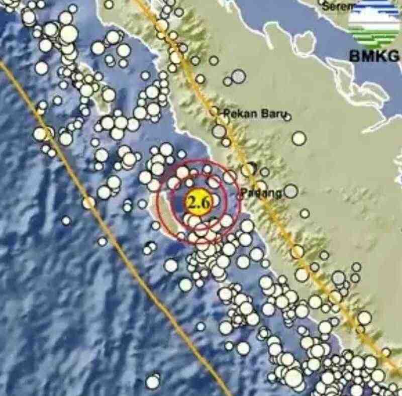 Gempa 2.6 Magnitudo dirasakan di Pariaman, Sumatera Barat (Sumbar), pada pukul 03:04:42 WIB.-@infobmkg-