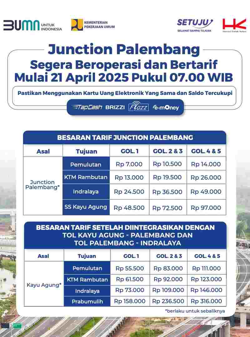Info Terbaru! Tol Junction Palembang Operasi Bertarif Mulai 21 April 2025 Pukul 07.00 WIB