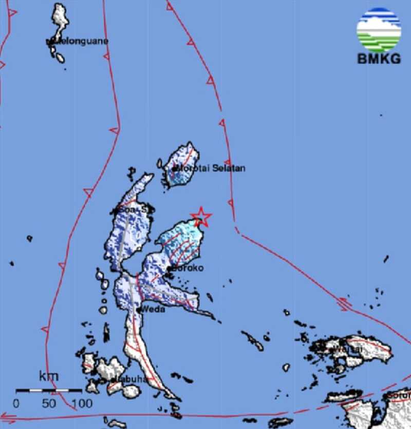 Berpusat di laut 41 km timur laut Halmahera Timur, Maluku Utara.