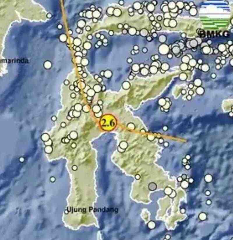 Gempa berkekuatan 2,6 Magnitudo terjadi pada pukul 07:25:37 WIB di Luwu Timur, Sulawesi Selatan-@infobmkg-