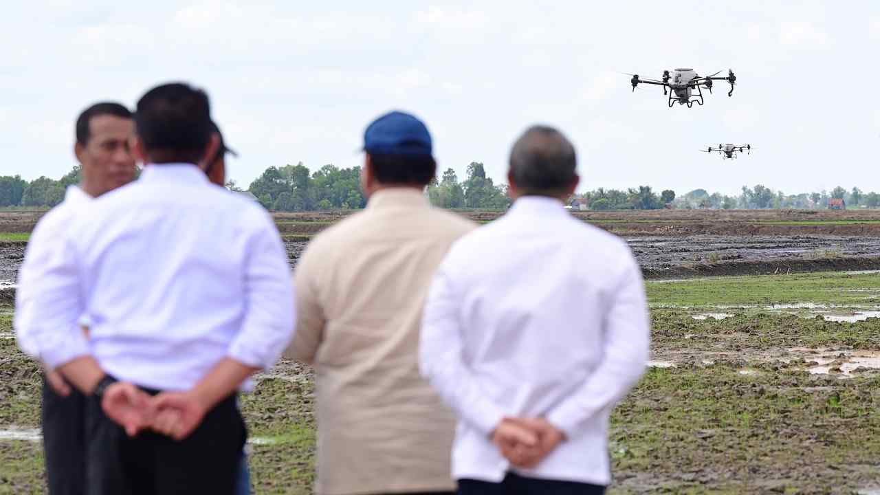 Presiden Prabowo secara langsung ikut serta dalam proses penanaman padi menggunakan drone pertanian -Kementerian Pertanian-