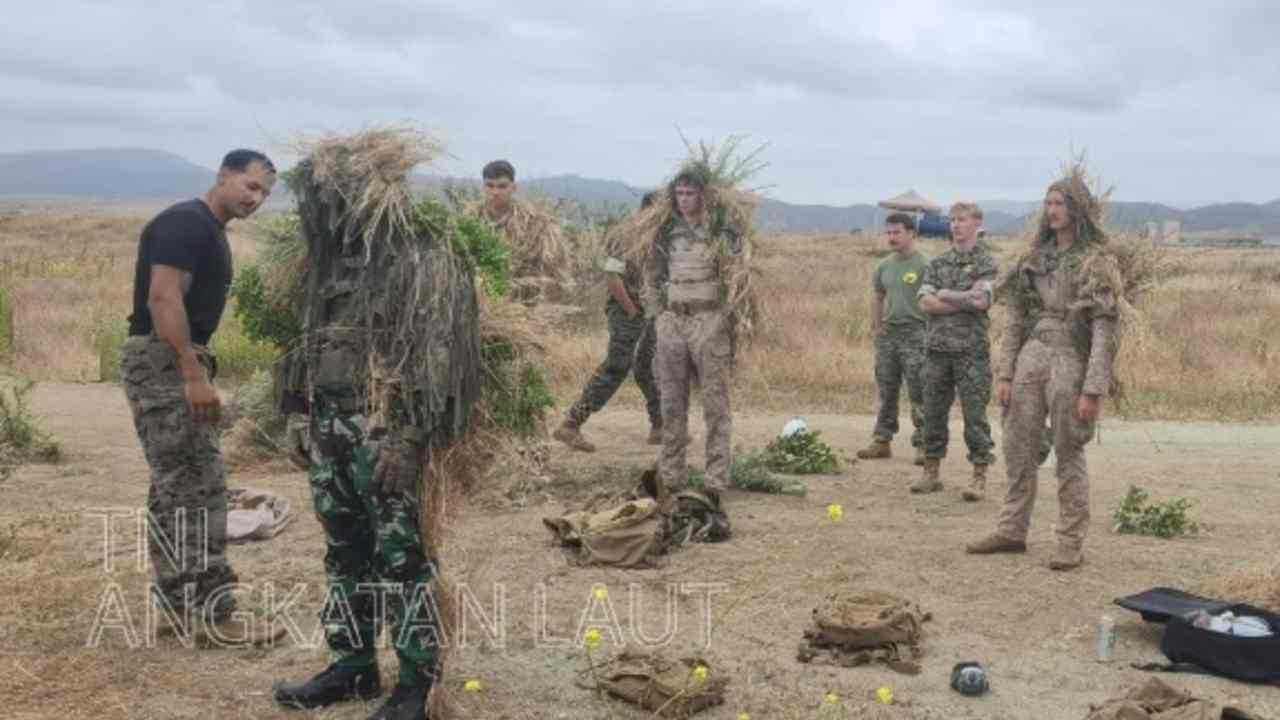 Prajurit Marinir TNI AL saat berlatih teknik penyamaran bersama The United States Marine Corps (USMC), disela-sela Latma Reconex 2025.-Tangkapan Layar IG@tni_angkatan_laut-TNI AL