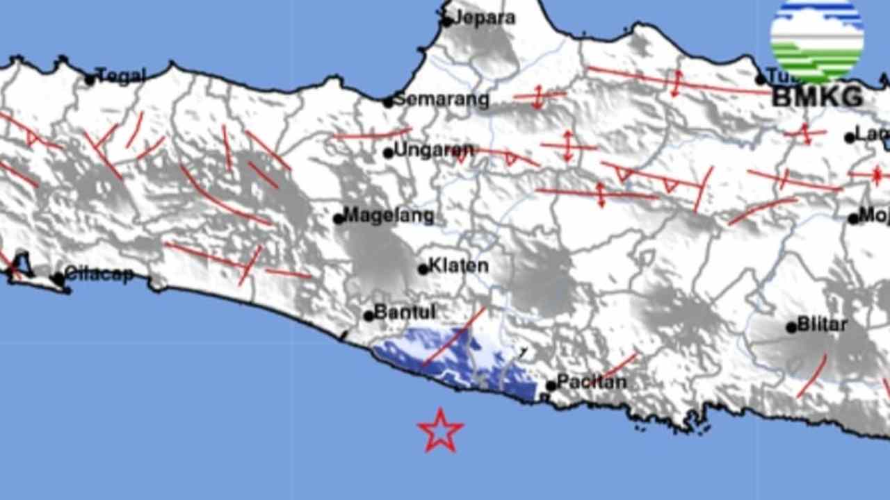 Berpusat di laut 43 km Tenggara Gunung Kidul, Yogyakarta.