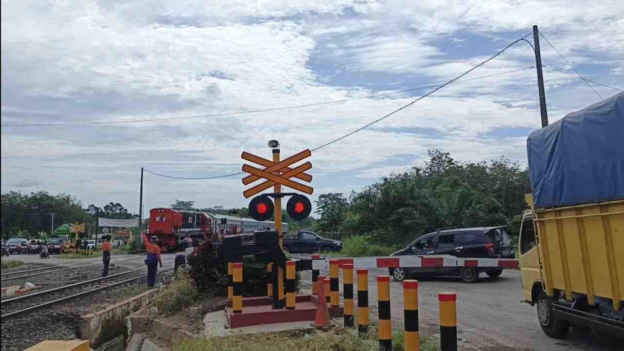 Perlintasan sebidang Jalan Lintas Palembang–Prabumulih, KM 60, sebelum disentuh proyek pembangunan Flyover Gelumbang.-YouTube/Ikhsan Adilianta-