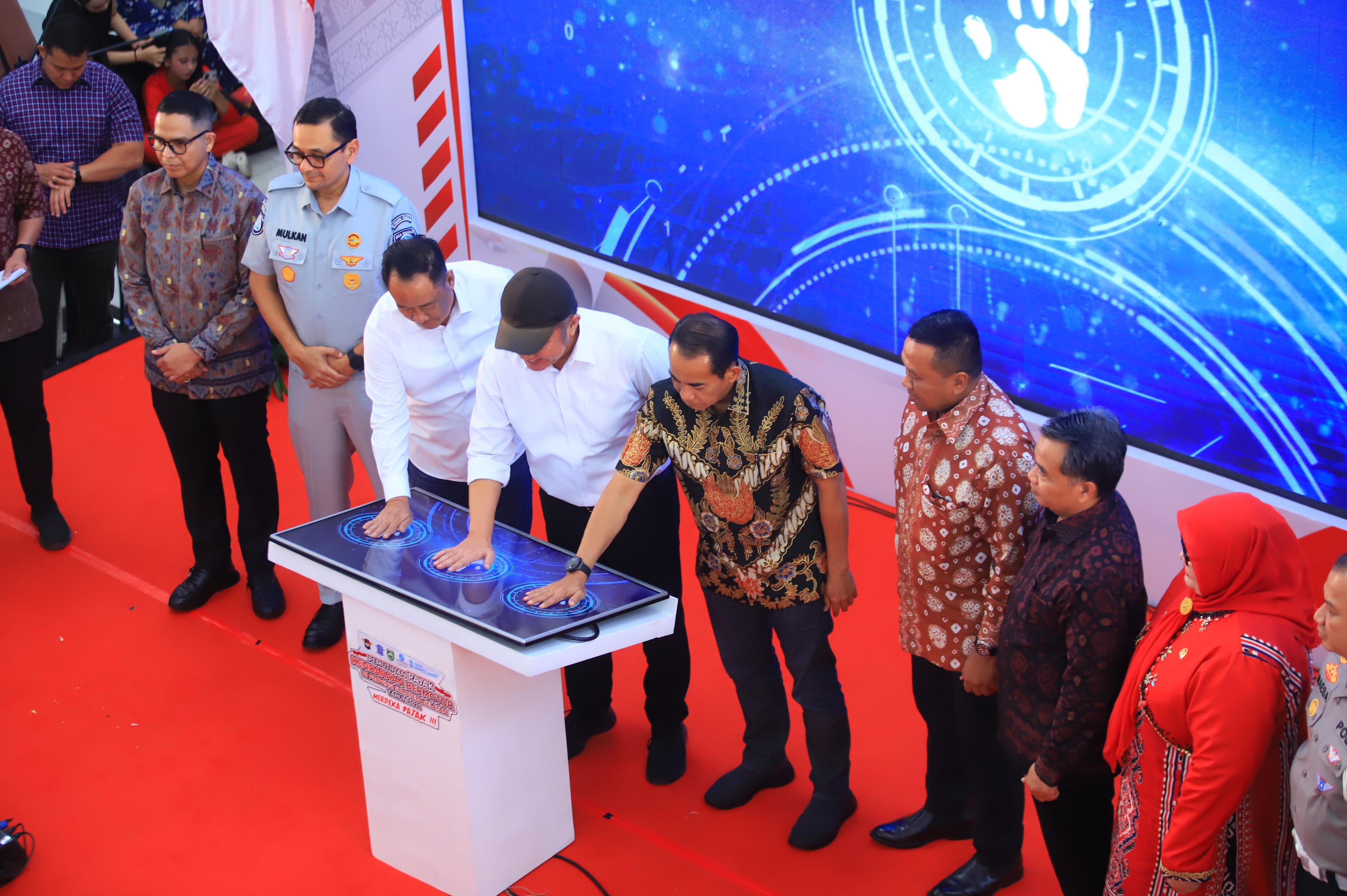 Gubernur Sumsel, H Herman Deru, Wagub Cik Ujang dan Kapolda Sumsel Irjen Pol Andi Rian Ryacudu meluncurkan Program Pemutihan Pajak Kendaraan Bermotor di Atrium PTC Mall Palembang, Sabtu 16 Agustus 2025.--
