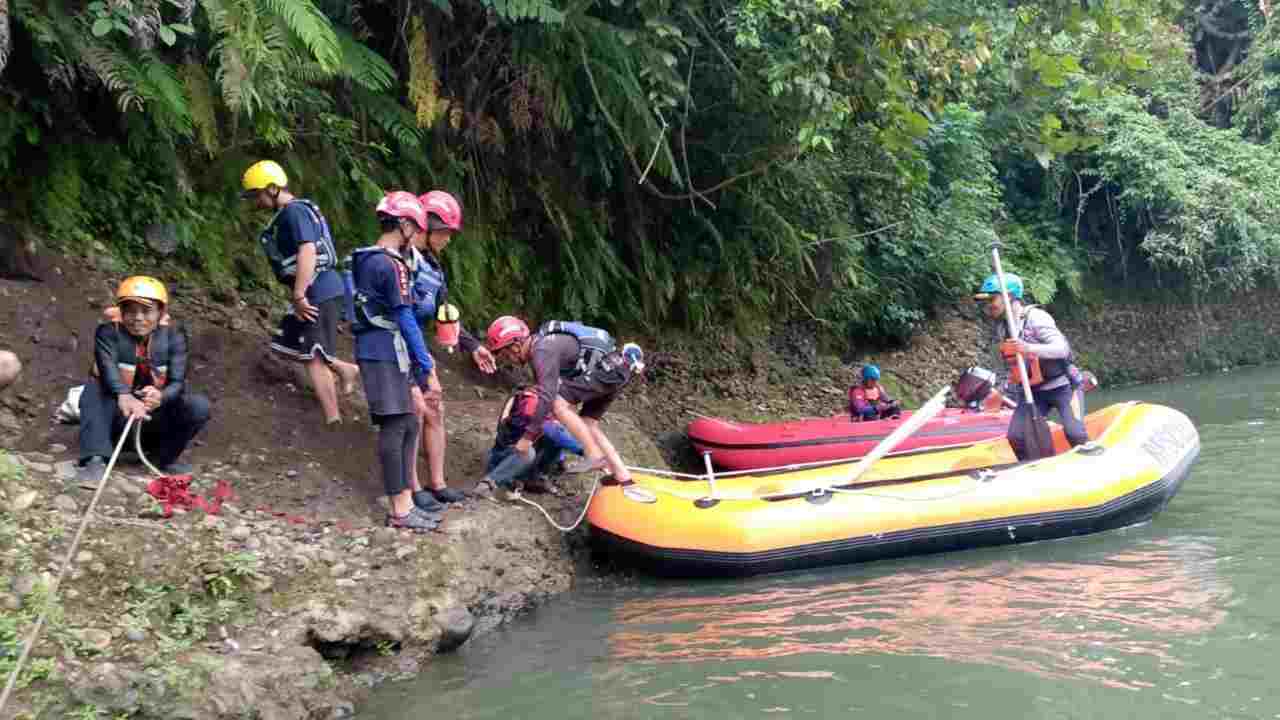 Tim rescue saat melakukan pencarian korban dengan cara penyisiran menggunakan rafting dan perahu karet disekitar lokasi kejadian hingga radius 4 KM².-Kantor SAR Palembang-