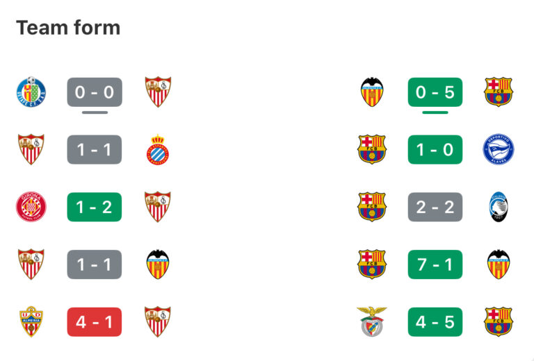 Performa Sevilla dan Barcelona di 5 laga terakhir--fotmob