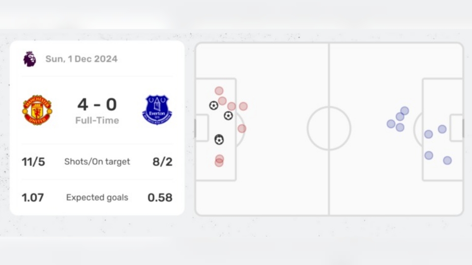 Terakhir kali United bertandang ke Goodison Park, klub asal Manchester ini mengamankan kemenangan 3-0, dengan Alejandro Garnacho mencetak gol salto yang terkenal.