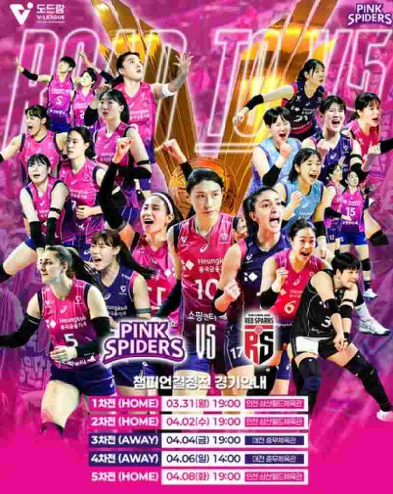 Partai puncak Korean V-League 2024/2025 antara Red Sparks versus Pink Spiders, akan berlangsung sore ini.-IG@hkpinkspiders-