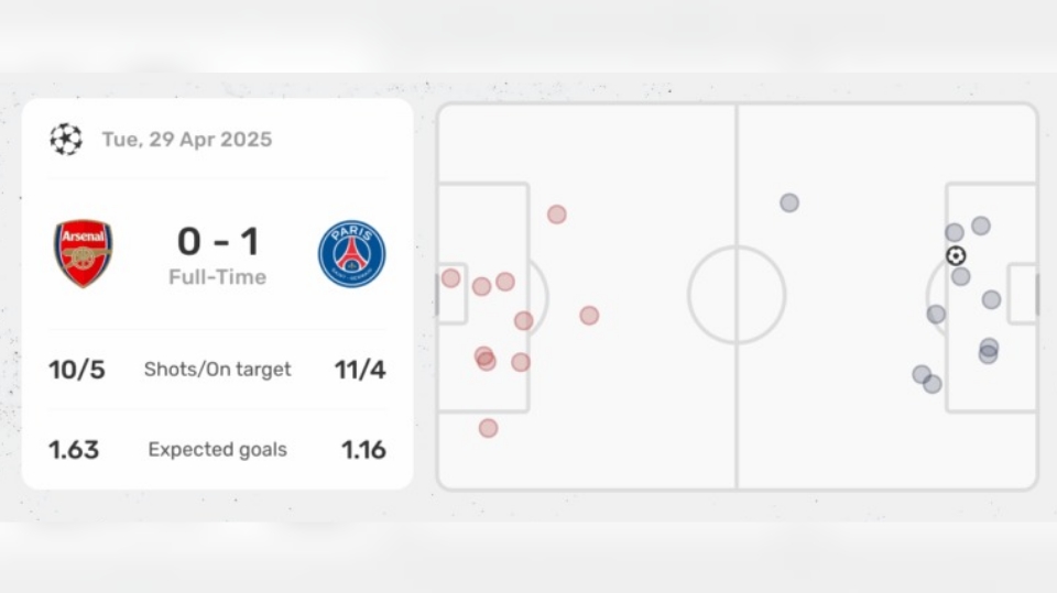 Statistik hasil pertandingan Leg pertama Semifinal Liga Champions Arsenal vs PSG--fotmob
