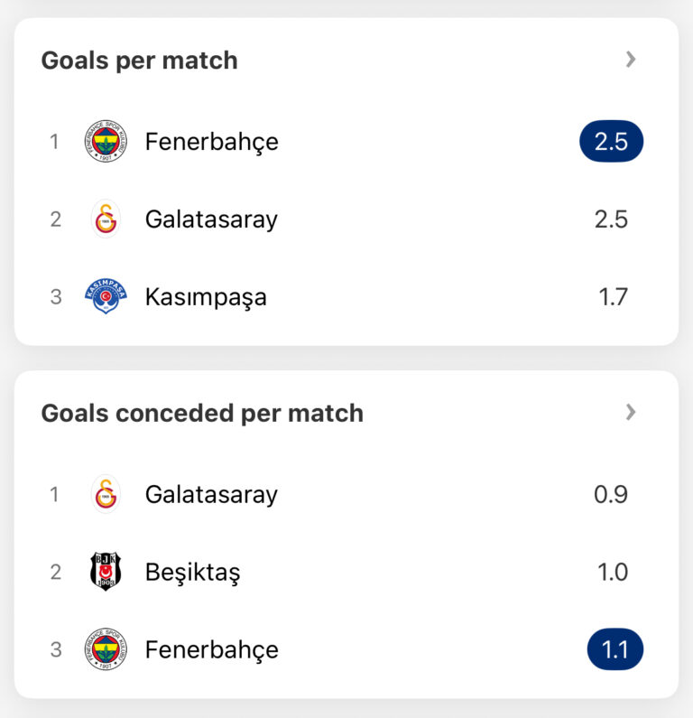 Statistik gol Fener, Süper Lig 2024/25--fotmob