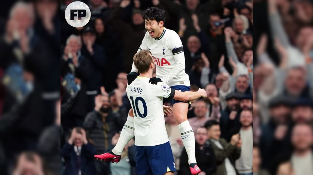 Son Heung-min dan Harry Kane dari Tottenham Hotspur merayakan kemenangan pada 19 Februari 2023--IG/@footballpalacee