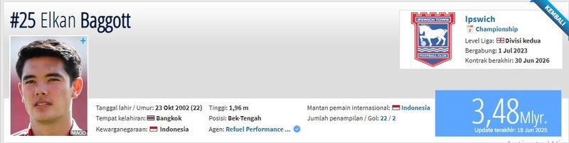 Kembali ke Elkan Baggott, perpanjangan kontrak yang diberikan oleh Ipswich Town diumumkan di media sosial resmi kliub.