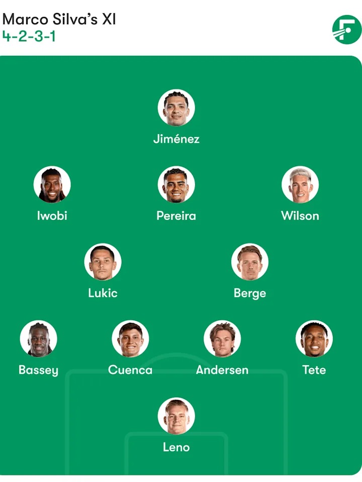 Susunan Pemain Fulham: Leno; Tete, Andersen, Cuenca, Bassey; Berge, Lukic; Wilson, Pereira, Iwobi; Jiménez.