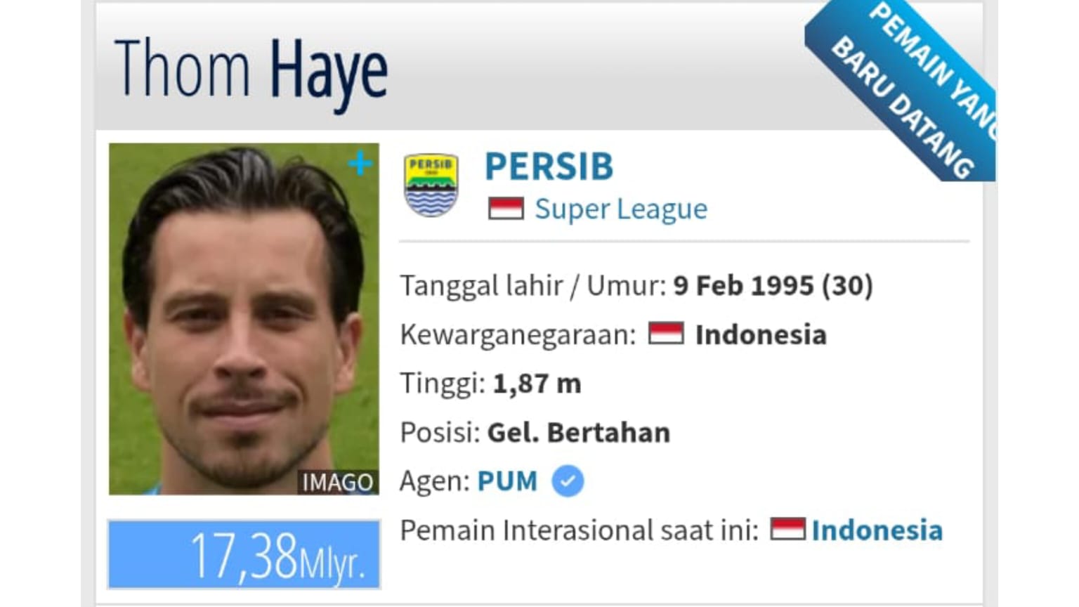 Selain itu, situs Transfermarkt.co.id juga telah menyematkan logo Persib Bandung di biodata Thom Haye.