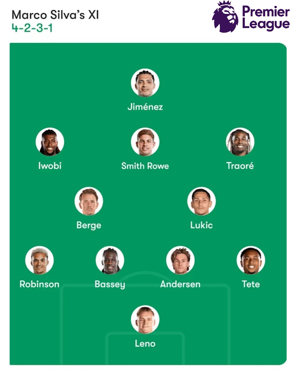 Prediksi Susunan Pemain Fulham (4-2-3-1): Leno; Tete, Andersen, Bassey, Robinson; Lukić, Berge; Traoré, Smith Rowe, Iwobi; Jiménez.