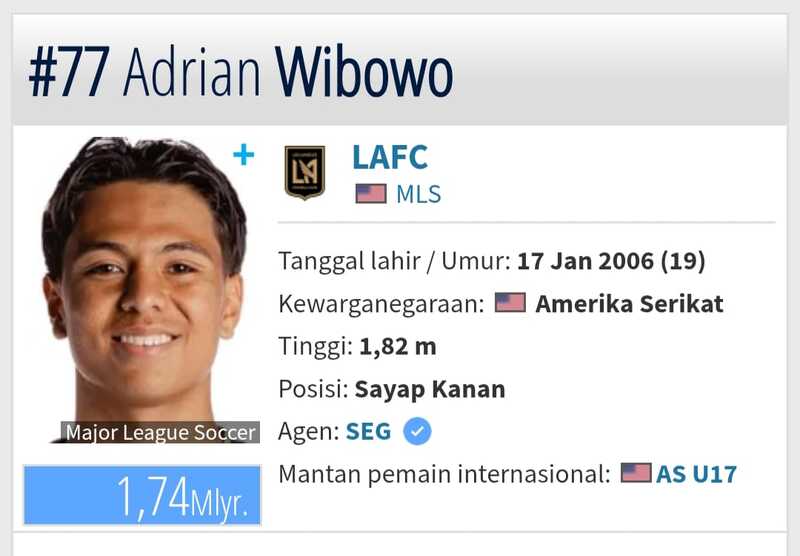 Adrian Wibowo, winger tajam klub Los Angeles FC, Amerika Serikat, akhirnya mendapatkan panggilan dari Timnas Indonesia.-transfermarkt.co.id-